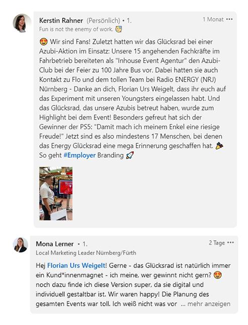 Das sagen unsere Kunden zum Glücksrad und der Zusammenarbeit.